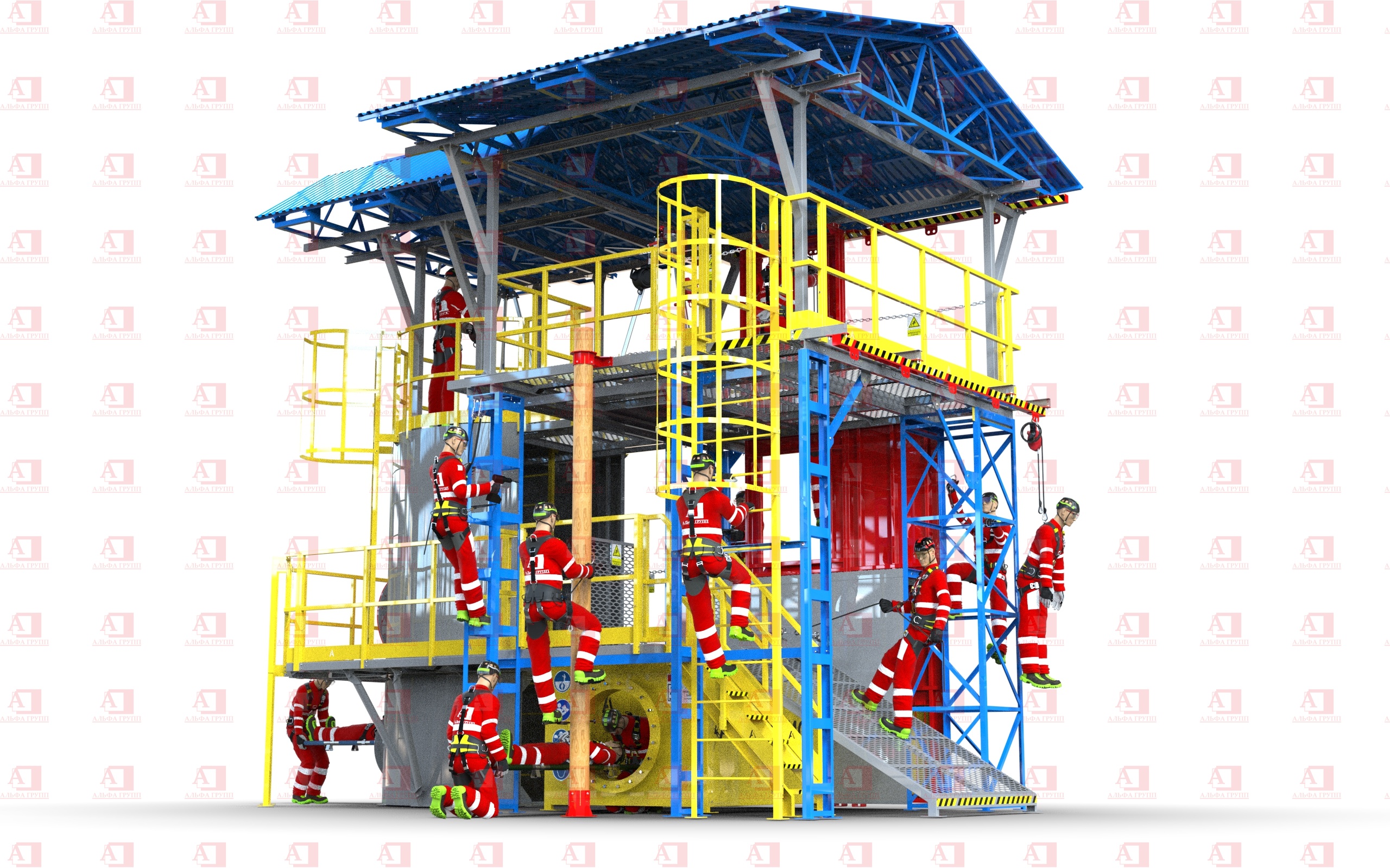 Для защиты от риска падения комплекс оснащен перилами и защитным ограждением высотой не менее 1100 мм.
