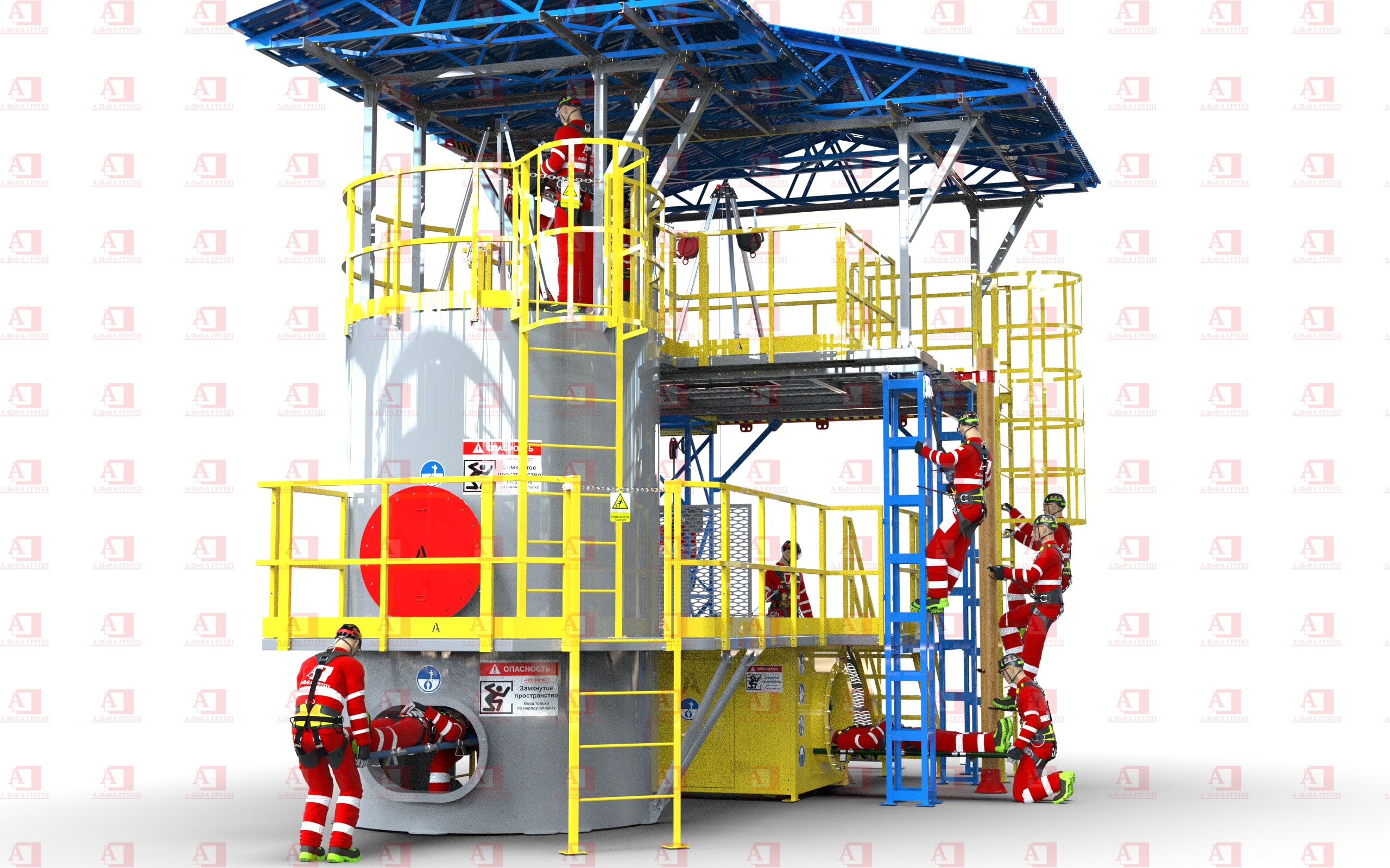 Места интенсивной работы с трипод усилены листами стали и швеллером. Люки и лазы размещены строго симметрично друг под другом для максимального использования высоты комплекса.